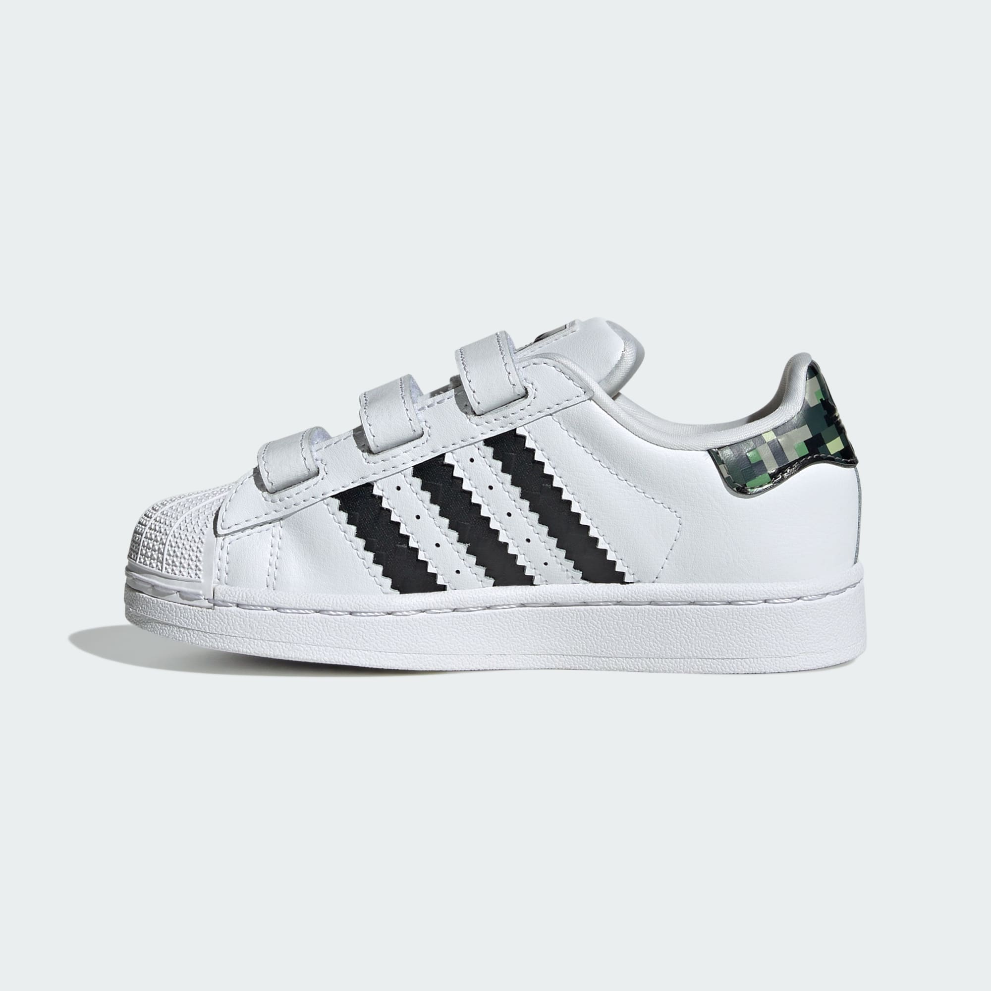 Este tênis infantil adidas Superstar adiciona uma estampa inspirada no mundo dos blocos de Minecraft ao icônico tênis de basquete. A biqueira shell toe e as Três Listras serrilhadas mantêm o look clássico, enquanto a língua acolchoada, a palmilha moldada e o cabedal sintético oferecem conforto. O solado de borracha tem durabilidade e tração para qualquer terreno.