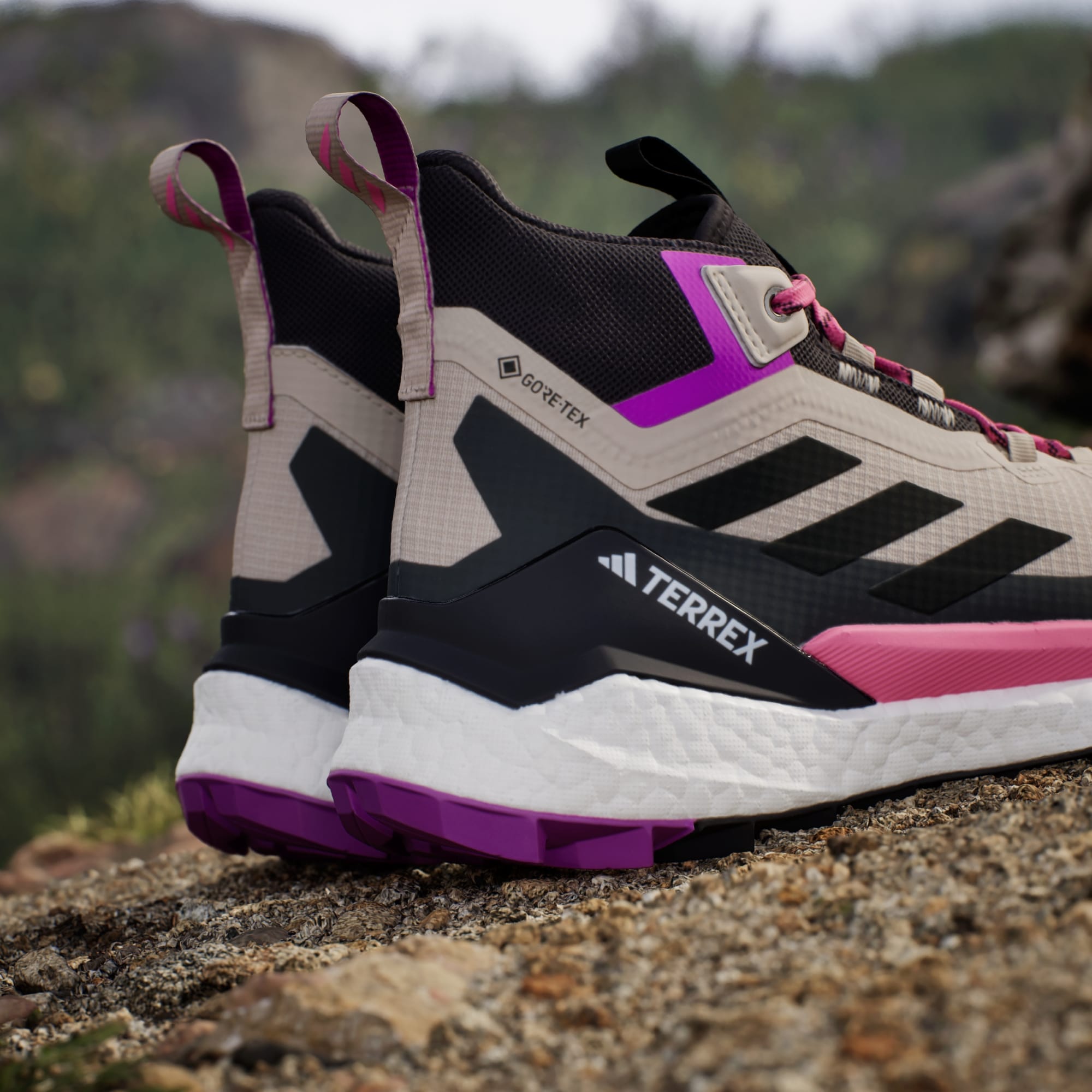 Vá mais longe. Explore mais. Curta a vista. Seja para caminhar na natureza ou fazer uma trilha mais pesada, este tênis leve de trilha oferece conforto e suporte de outro nível para aumentar sua capacidade nas montanhas. A entressola BOOST traz energia a cada passo dado, para que você continue em movimento em caminhadas curtas ou longas. A membrana GORE-TEX permite que os pés respirem à medida que se aquecem. O cabedal macio oferece suporte e a língua reforçada envolve seus pés com conforto que se ajusta ao formato do pé, removendo detritos e permitindo caminhadas mais longas. A estrutura interna e o suporte no calcanhar aumentam a estabilidade, para que você se movimente com confiança em terrenos rochosos e irregulares, e o solado de borracha Continental™ mantém tração confiante em superfícies secas ou molhadas. Ao optar por materiais reciclados, conseguimos reutilizar materiais que já foram criados, contribuindo para a redução do desperdício. As opções de materiais renováveis também nos ajudam a reduzir a nossa dependência de recursos finitos. Os nossos produtos feitos com uma mistura de materiais reciclados e renováveis contêm pelo menos 20% desses materiais no total.