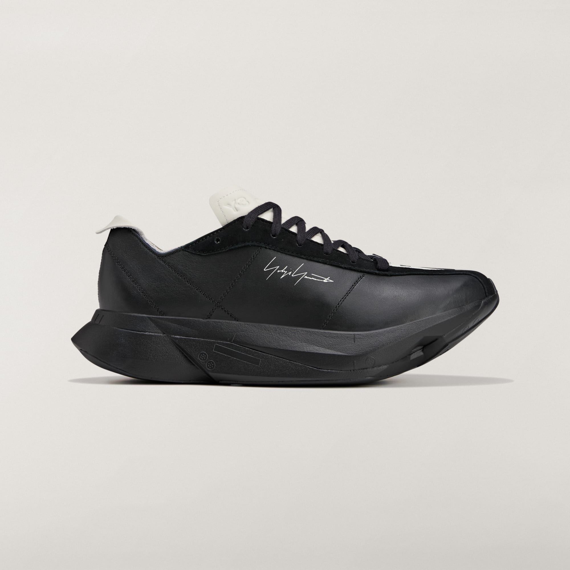 O design minimalista e o Logo Yohji Yamamoto mostram a inconfundível influência do design Y-3, completando o visual.