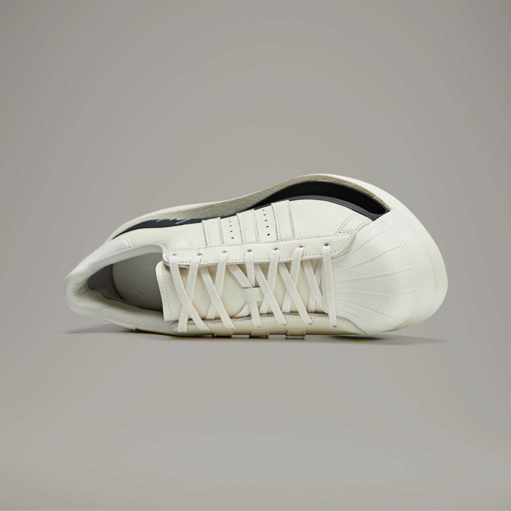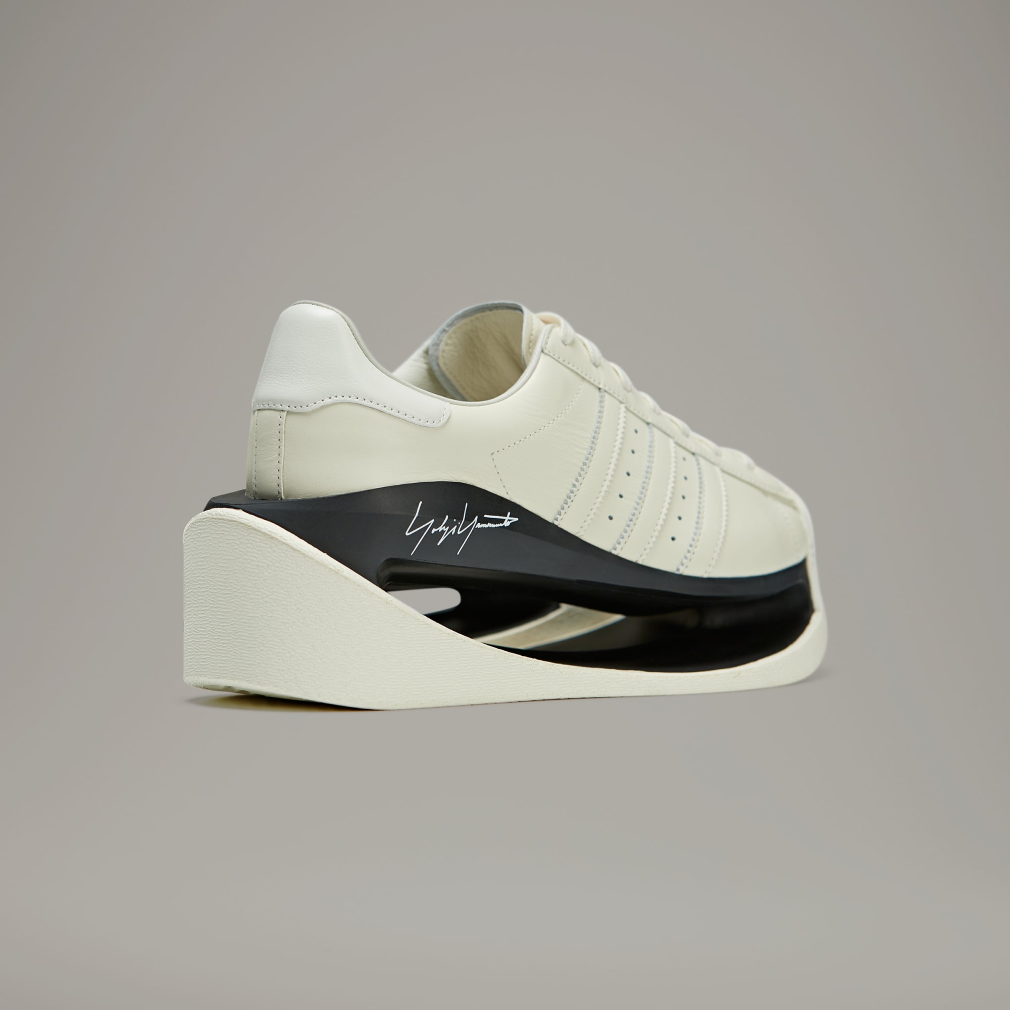 Um dos perfis Y-3 mais avançados e ousados até hoje, o tênis Y-3 Gendo Superstar foi desenvolvido com um espaço totalmente vazio na entressola. Ele leva a sério um conceito filosófico japonês chamado Ma, que explora como uma pausa no tempo ou um espaço negativo pode criar beleza, de uma forma que, no fim das contas, não deixa nada ausente. A expressão arrojada contrasta com elementos do tênis clássico dos arquivos, o adidas Superstar, uma das silhuetas favoritas de Yohji Yamamoto. O couro macio e premium fica sobre a entressola, e a assinatura de Yohji dá o toque final.