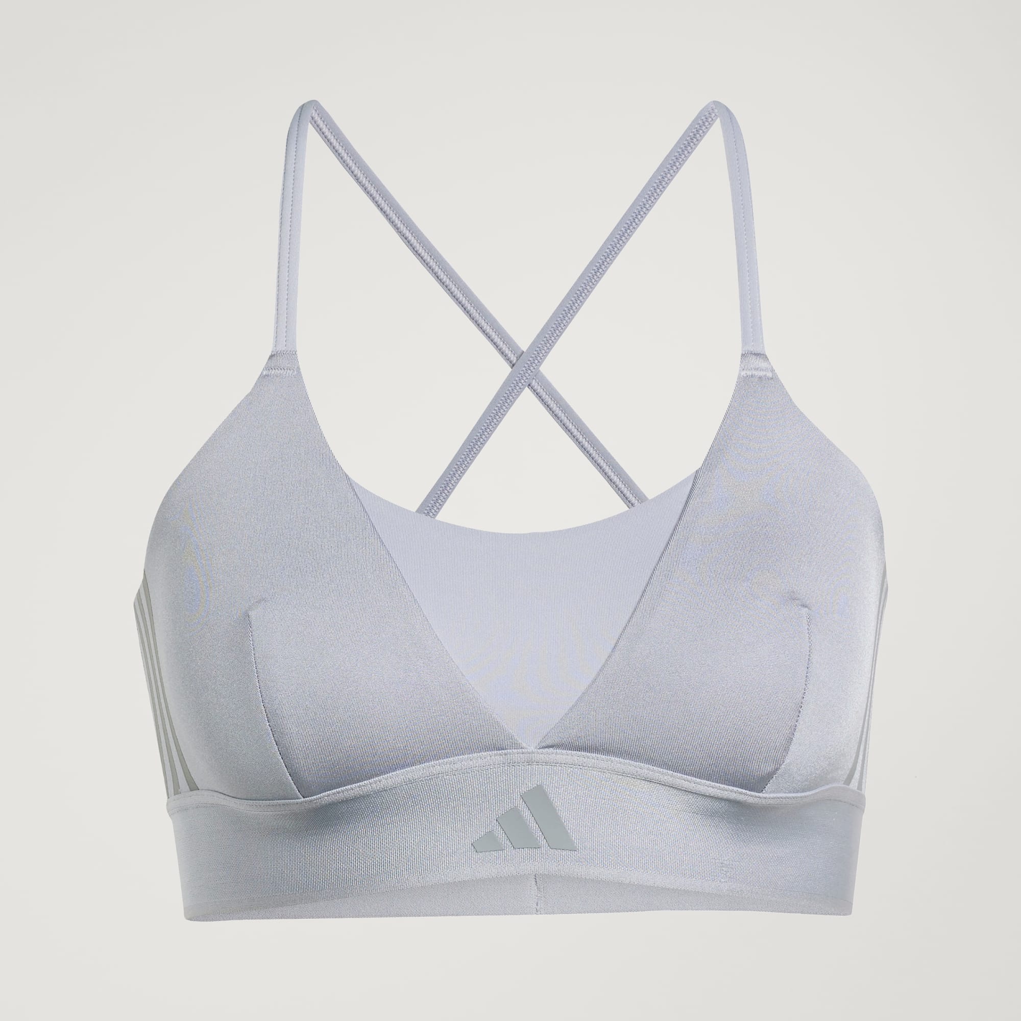 Esportiva, mas fofa. O adidas Top Bralette Hyperglam Shine é um sutiã fácil de usar para yoga, Pilates, barre e outros exercícios de baixo impacto. O CLIMACOOL absorve e dispersa o suor para que você tenha um desempenho fresco, seco e sem distrações. As alças cruzadas dão um ar estiloso sob os tops abertos nas costas, e os painéis brilhantes dão um toque de glamour. CLIMACOOL ajuda você a controlar o suor com materiais que absorvem e gerenciam o suor rapidamente. Suas fibras de secagem rápida proporcionam uma sensação de pele fresca.