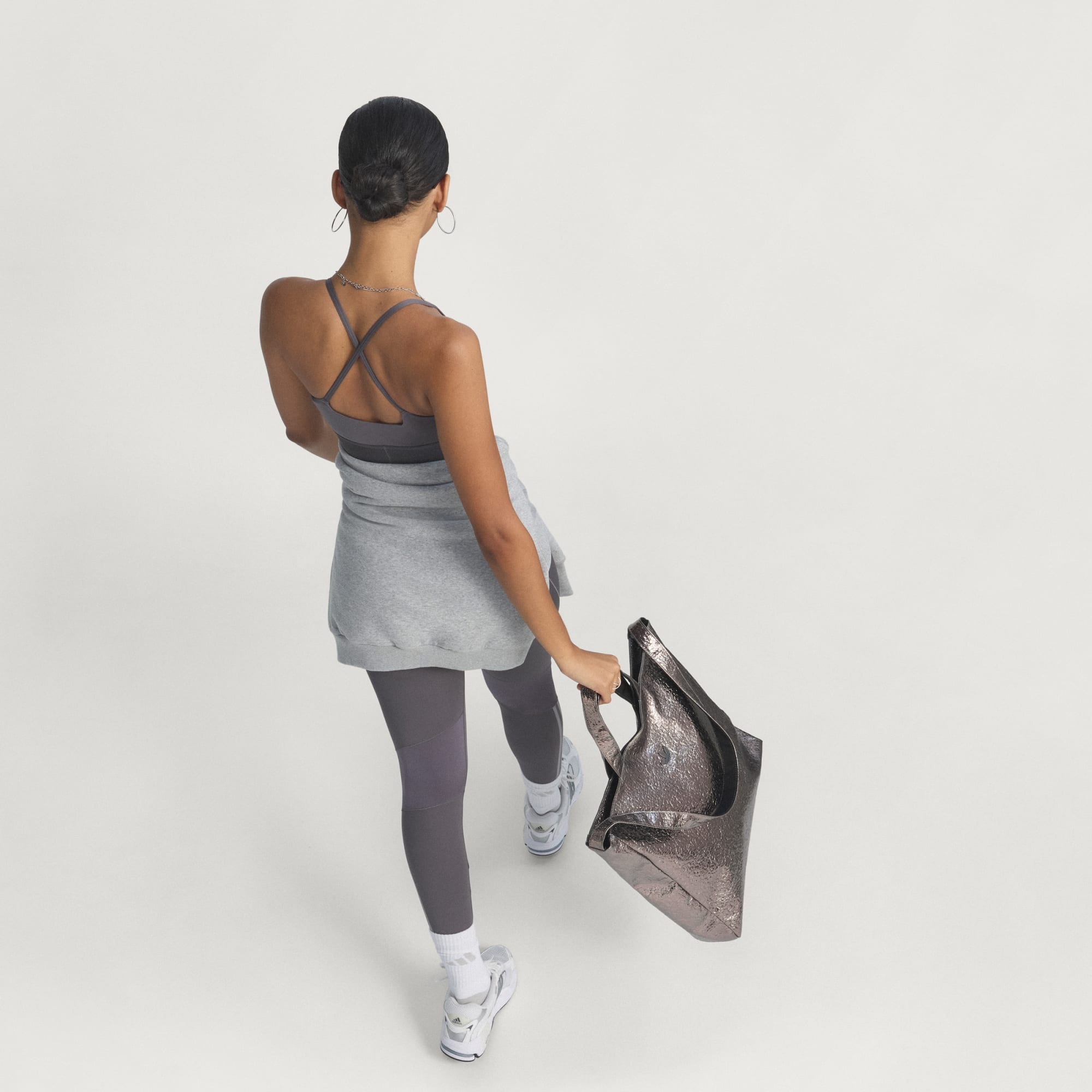 Esportiva, mas fofa. O adidas Top Bralette Hyperglam Shine é um sutiã fácil de usar para yoga, Pilates, barre e outros exercícios de baixo impacto. O CLIMACOOL absorve e dispersa o suor para que você tenha um desempenho fresco, seco e sem distrações. As alças cruzadas dão um ar estiloso sob os tops abertos nas costas, e os painéis brilhantes dão um toque de glamour. CLIMACOOL ajuda você a controlar o suor com materiais que absorvem e gerenciam o suor rapidamente. Suas fibras de secagem rápida proporcionam uma sensação de pele fresca.